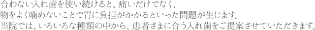 現在使用中の入れ歯に不満をお持ちの方は、当院にご相談ください。